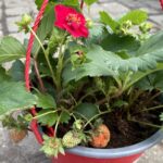 Inną rośliną ozdobną i z kwiatów i owoców, która pokazała się w tym sezonie jest truskawka zwisająca o pięknych różowo-czerwonych kwiatach. Jest to również roślina owocująca. Truskawki możemy użyć do dekoracji albo spożyć. Najlepiej kwitnie, tak jak pelargonia, w miejscach nasłonecznionych.