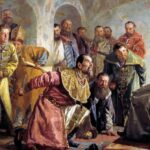 Dymitr Samozwaniec I przysięga Zygmuntowi III Wazie wprowadzenie katolicyzmu w Rosji. Obraz Mikołaja Newrewa / Fot. Wikipedia