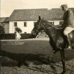 Bolesław Jakubowski, syn Bolesława – hodowcy koni, przed swoją oficyną, lata 30-te XX wieku / Źródło: zbiory prywatne Józefa Jakubowskiego
