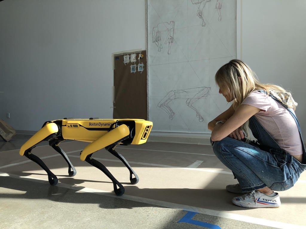 Agnieszka Pilat pracuje ze Spotem – to maszyna przypominająca wyglądem psa. Obecnie jest na etapie nauki trzymania sztyftów z farbą olejną i ruchów nakładania farby na specjalny panel. – Robot jest łatwy w obsłudze, to prawie jak gra komputerowa. Dostałam joystick do kierowania nim, na którym jest także ekran, w którym widać to co robi – mówi łodzianka.