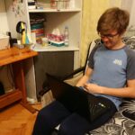 Rodzeństwo do pracy podczas lekcji zdalnych ma jeden laptop, najczęściej korzysta z niego Bartek, Jola łączy się przez komórkę.