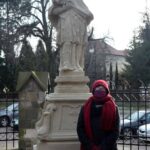 Końskie. Figura Jana Nepomucena po renowacji. Na zdjęciu: Małgorzata Osełka – konserwator zabytków; Fot. Magdalena Galas-Klusek / Radio Kielce