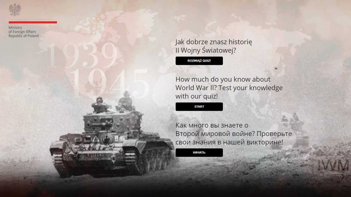 „Dziś rusza nasz quiz promujący wiedzę o #IIWŚ i Flaga Polski wśród odbiorców za granicą! Quiz jest dostępny po PL, EN i RU. A Ty, ile zdobędziesz punktów? Sprawdź i nominuj innych!” – zachęca na Twitterze resort spraw zagranicznych.