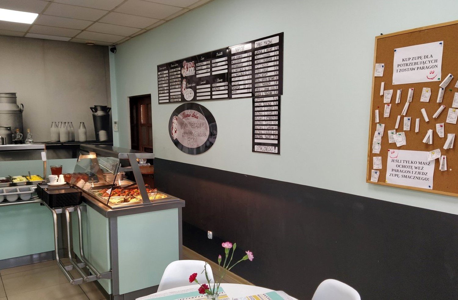 Wystarczy zapłacić za wybrany posiłek, a paragon powiesić na specjalnej tablicy. Osoba potrzebująca może w ten sposób wybrać sobie ciepłe danie.