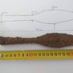 Szczęśliwym znalazcą jest Jacek Bombiński poszukiwacz z wieloletnim doświadczeniem. Grot za zgodą konserwatora został wyjęty z ziemi i zabezpieczony. Później został przekazany do Wojewódzkiego Urzędu Ochrony Zabytków w Kielcach. Stąd trafi do Krakowa na konserwację.