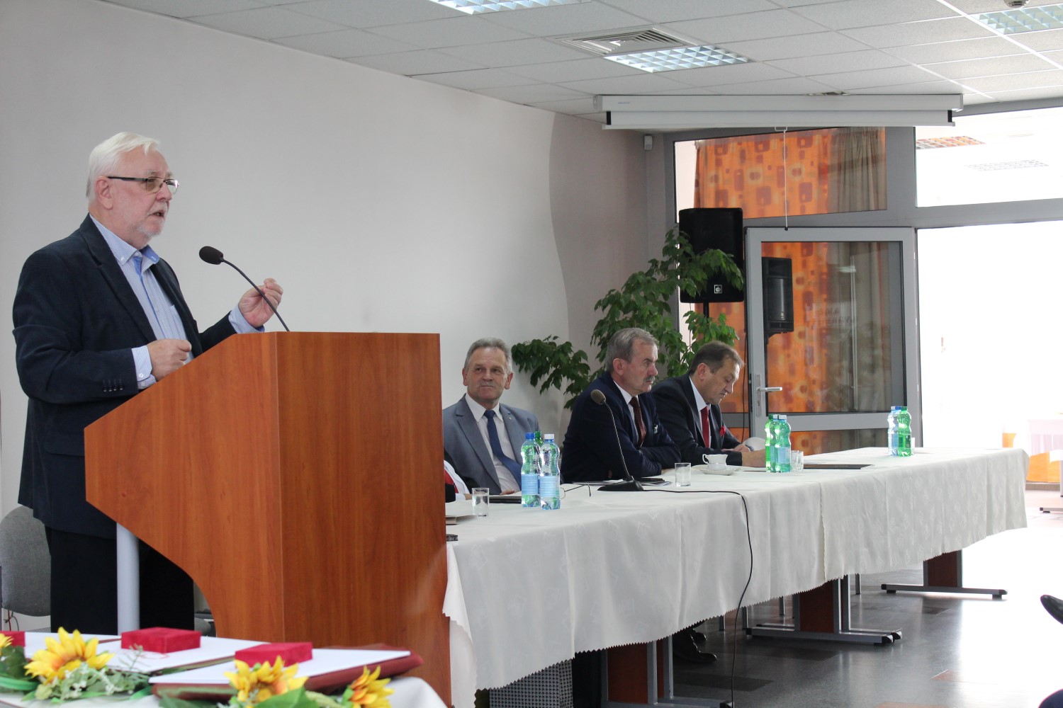 18.10.2019. Busko-Zdrój. Konwent Powiatów Województwa Świętokrzyskiego z okazji 20-lecia Samorządów Powiatowych. Przemawia: Jerzy Stępień – były prezes Trybunału Konstytucyjnego / Marta Gajda / Radio Kielce