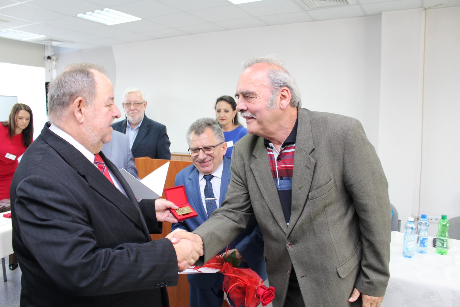 18.10.2019. Busko-Zdrój. Konwent Powiatów Województwa Świętokrzyskiego z okazji 20-lecia Samorządów Powiatowych. Na zdjęciu (od lewej): Ludwik Węgrzyn – ekspert Związku Powiatów Polskich, Stanisław Masternak – były starosta sandomierski / Marta Gajda / Radio Kielce