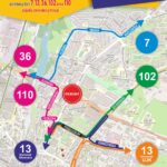 • autobusy linii 7 w obu kierunkach pojadą przez ulicę Klonową i Orkana; • autobusy linii 13 w obu kierunkach pojadą przez al. Tysiąclecia Państwa Polskiego; • autobusy linii 36 w obu kierunkach pojadą przez ulicę Pocieszka i Marszałkowską (do Jesionowej); • autobusy linii 102 w obu kierunkach pojadą przez al. Tysiąclecia Państwa Polskiego; • autobusy linii 110 w obu kierunkach pojadą przez ulicę Pocieszka i Marszałkowską (do Jesionowej);