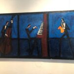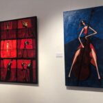 – Na obrazach można zobaczyć ludzi słuchających muzyki i grających na rożnych instrumentach m.in. na fortepianie, saksofonie i wiolonczeli. Małgorzata Stępniak maluje też instrumenty. Na jednym z obrazów jest kontrabas.