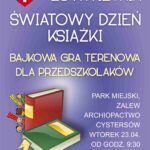 We wtorek, 23 kwietnia w Światowym Dniu Książki, w Jędrzejowie zorganizowana zostanie gra terenowa dla przedszkolaków pod hasłem „Na bajkowym szlaku”. W imprezie udział wezmą trzy 10-osobowe drużyny reprezentujące jędrzejowskie przedszkola: Pod Kasztanem, Pod Słoniem i Bajowa Ciuchcia – informuje Beata Satro, dyrektor Miejsko-Gminnej Biblioteki Publicznej w Jędrzejowie.