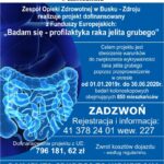 Jak informuje Grzegorz Lasak – dyrektor Zespołu Opieki Zdrowotnej w Busku, pierwsze badania kolonoskopowe odbędą się w sobotę, 23 lutego. Dyrektor podkreśla, że rak jelita grubego jest schowany w organizmie. Nie widać go i nie czuć, ale kiedy już zaatakuje, często jest za późno na wyleczenie.