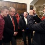 Krzysztof Zanussi chętnie rozmawiał i odpowiadał na pytania uczestników spotkania, chętnie też podpisywał swoje książki.