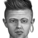 Sprawcą był mężczyzna w wieku około 40 lat, wzrostu około 180 cm, szczupłej budowy ciała, cera normalna blada, włosy ciemne, po bokach krótkie, w środkowej części na górze głowy włosy średniej długości zaczesane do góry tzw. irokez, w lewej brwi posiadał kolczyk zakończony kulkami, w lewym uchu umieszczone koło tzw. tunel. Ubrany był w długie spodnie w kolorach szaro-zielono-czarno-białych typu bojówki, koszulkę z krótkim rękawem z napisem Nike.