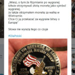 „Właśnie podszedł do mnie amerykański weteran. – Wiesz, o tym, że Rzymianie po wygranej bitwie otrzymywali złotą monetę, jako symbol wygranej? Ja także otrzymałem monetę za walkę w Wietnamie. Chcę Ci ją przekazać za wygrane bitwy o Europę.”