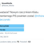 Kto byłby lepszym rzecznikiem Klubu Parlamentarnego Prawa i Sprawiedliwości? Poseł z Kielc Dominik Tarczyński czy poseł z Gdańska Marcin Horała? Takie pytanie postawiła dzisiaj na Twitterze redakcja kwartalnika „Nowe Media”.