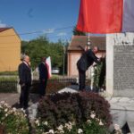 Burmistrz Skalbmierza Michał Markiewicz składa kwiaty przed pomnikiem upamiętniającym martyrologię mieszkańców