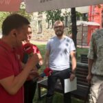 Dzisiaj również zatrzymaliśmy się na rynku w Chmielniku. Tam chętni czytali do mikrofonu fragment „Sztuka dla sztuki”.