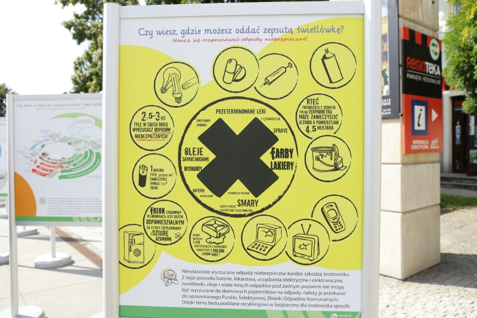 Ścieżka edukacyjna poświęcona ochronie środowiska i segregacji odpadów została otwarta na Placu Artystów w Kielcach. Na kilku tablicach pokazane zostało m.in. jakimi prostymi, codziennymi działaniami możemy chronić przyrodę, w jaki sposób segregować odpady oraz cały proces, który przechodzą odpady od momentu ich wyprodukowania przez człowieka do powtórnego ich przetworzenia informuje Magdalena Słok Domańska z firmy Eneris inicjatora akcji.