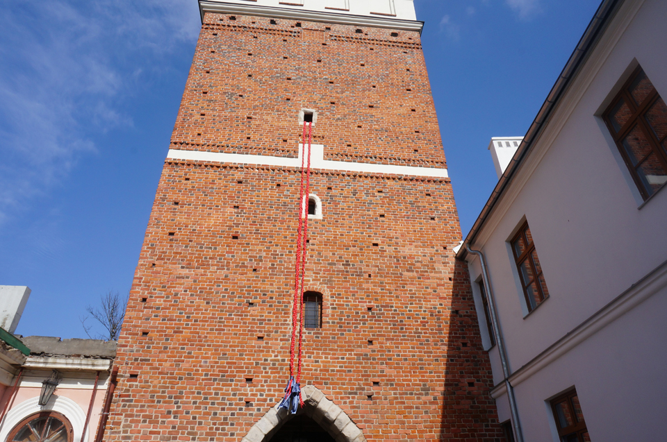 Na Bramie Opatowskiej w Sandomierzu zawieszone zostały dzisiaj dwa 12 metrowe warkocze uplecione z liny okrętowej. To inicjatywa uczniów z I LO Collegium Gostomianum, którzy w ten sposób chcą zwrócić uwagę na problemy osób chorujących na bardzo rzadką, genetyczną chorobę, której leczenie jest drogie i nierefundowane przez NFZ.