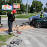 Nikt nie odniósł obrażeń, ale ruch w miejscu kolizji jest utrudniony. Na miejscu pracują policjanci i strażacy.