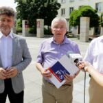 Konferencja PiS na pl. Artystów. Krzysztof Słoń, Krzysztof Lipiec, Jarosław Rusiecki / Wojciech Habdas / Radio Kielce