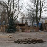 Przy klasztorze Kapucynów w Kielcach trwa budowa szopki bożonarodzeniowej.