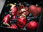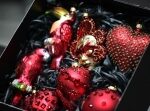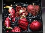 Bombki Lucyny Gozdek ze Staszowa. Ręcznie malowane. Jest tu tukan, papuga, a także serce i maska wenecka.
