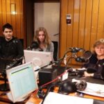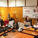 W studiu Radia Kielce podczas finałowej licytacji choinki II LO, dziennikarzom towarzyszyli przedstawiciele szkoły i rodziców uczniów ze Śniadeckiego. / Wojciech Habdas / Radio Kielce