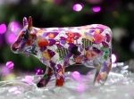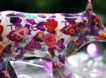 Skarbonka – krówka. Wykonana ze szkła i przyozdobiona kolorowymi papierkami techniką decoupage’u. Podarowana przez Stowarzyszenia Siemacha.