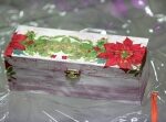 Drewniana skrzynia. Sprawdzi się nie tylko, jako ozdoba, ale również do przechowywania drobnych przedmiotów. Podarowana przez Stowarzyszenia Siemacha Wymiary 25x5x5 cm