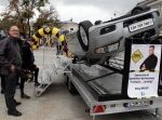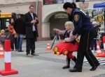 22.9.2013. Światowy Dzień Bez Samochodu. Dzieci z zainteresowaniem obserwowały ludzi w symulatorze dachowania. / Wojciech Habdas / Radio Kielce