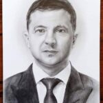 Trwa licytacja portretu Prezydenta Ukrainy Wołodymyra Zełenskiego.
