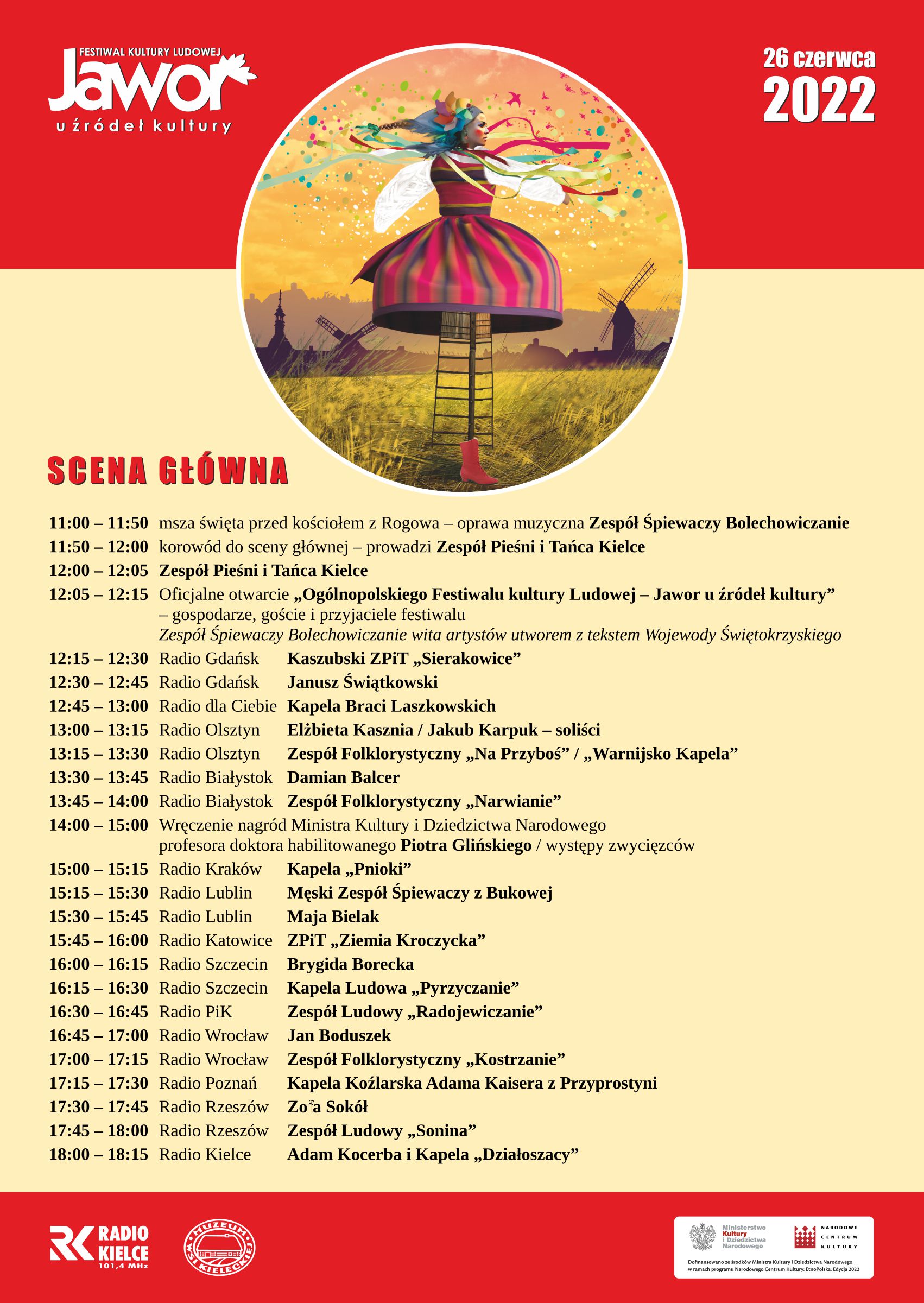 Pierwszy dzień festiwalu zakończy koncert „Świętokrzyscy artyści gościom”, podczas którego zostaną wręczone nagrody „Jawor u źródeł kultury” dla artystów i twórców z regionu świętokrzyskiego.