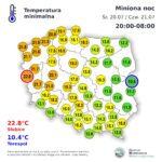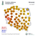 Jak przekazał Kamil Walczak z Centralnego Biura Prognoz Instytutu Meteorologii i Gospodarki Wodnej – Państwowego Instytutu Badawczego, w czwartek największe upały prognozowane są dla Dolnego Śląska i Wielkopolski. Tam lokalnie do 38 stopni Celsjusza i będą to temperatury, które zbliżą się do rekordowych wartości. Najchłodniej, ale także gorąco, z temperaturą od 28 stopni Celsjusza, czwartek zapowiada się na Suwalszczyźnie.W regionie Świętokrzyskim do czwartkowego wieczora prognozuje się występowanie temperatur maksymalnych przekraczających 33-34 stopni Celsjusza.Wszystko wskazuje, że aktualna fala upałów będzie jednak krótka. Najwyższych temperatur spodziewamy się tuż przed nadejściem chłodnego frontu atmosferycznego niosącego deszcze i burze. Wkroczy on nad zachodnie województwa w czwartek (21 lipca) późnym popołudniem. Brak jeszcze odpowiedzi na pytanie: kiedy ochłodzenie dotrze do nas?