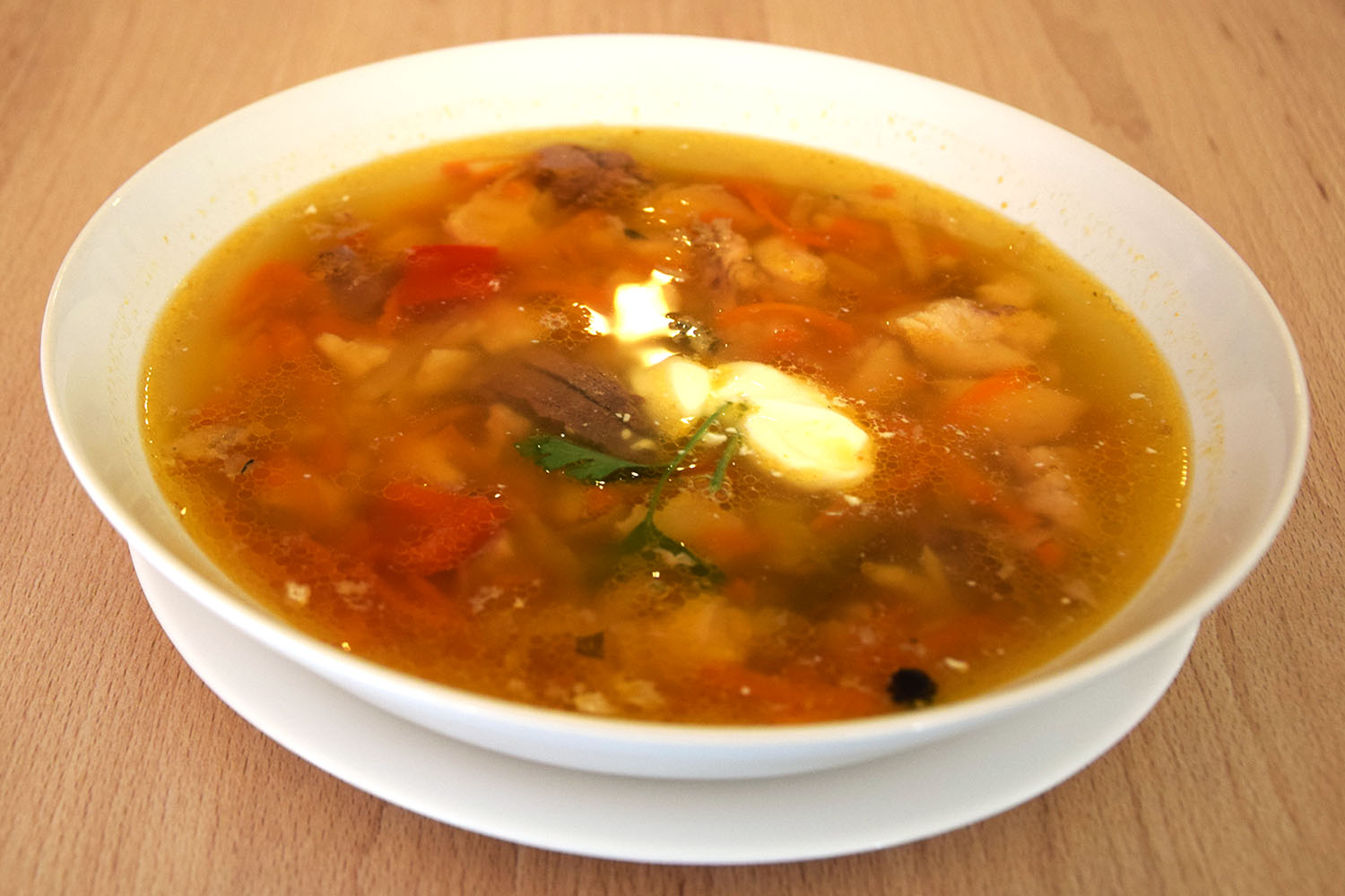 Ciasto na kluseczki: jajko dobrze roztrzepać, dosypać tyle mąki, aby uzyskać konsystencję gęstej śmietany i dobrze rozrobić widelcem bądź łyżką. Kłaść łyżką kluseczki bezpośrednio do garnka, co jakiś czas maczając łyżkę w gorącej zupie.
